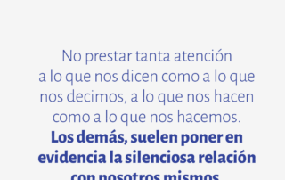 No prestar tanta atención a lo que nos dicen como a lo que nos decimos, a lo que nos hacen como a lo que nos hacemos. Los demás, suelen poner en evidencia la silenciosa relación con nosotros mismos.