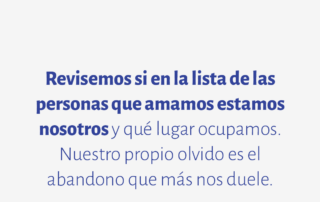 Revisemos si en la lista de las personas que amamos estamos nosotros y qué lugar ocupamos. Nuestro propio olvido es el abandono que más nos duele.