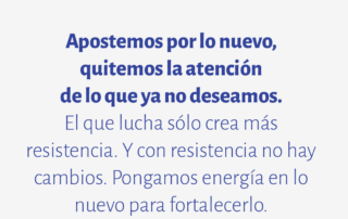 Apostemos por lo nuevo, quitemos la atención de lo que ya no deseamos. El que lucha sólo crea más resistencia. Y con resistencia no hay cambios. Pongamos energía en lo nuevo para fortalecerlo. Lo antiguo caerá por sí mismo.