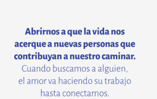 Abrirnos a que la vida nos acerque a nuevas personas que contribuyan a nuestro caminar. Cuando buscamos a alguien, el amor va haciendo su trabajo hasta conectarnos.