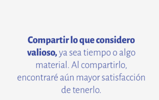 Compartir lo que considero valioso, ya sea tiempo o algo material. Al compartirlo, encontraré aún mayor satisfacción de tenerlo.