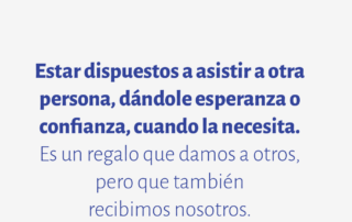 Estar dispuestos a asistir a otra persona, dándole esperanza o confianza, cuando la necesita. Es un regalo que damos a otros, pero que también recibimos nosotros.