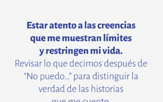 Estar atento a las creencias que me muestran límites y restringen mi vida. Revisar lo que decimos después de “No puedo…” para distinguir la verdad de las historias que me cuento.