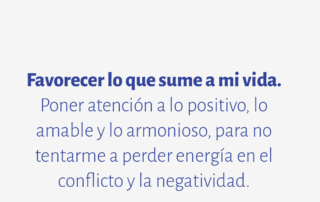 Favorecer lo que sume a mi vida. Poner atención a lo positivo, lo amable y lo armonioso, para no tentarme a perder energía en el conflicto y la negatividad.