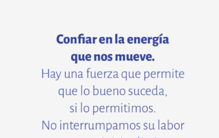 Confiar en la energía que nos mueve. Hay una fuerza que permite que lo bueno suceda, si lo permitimos. No interrumpamos su labor con nuestros juicios limitantes.