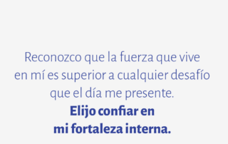 Reconozco que la fuerza que vive en mí es superior a cualquier desafío que el día me presente. Elijo confiar en mi fortaleza interna.
