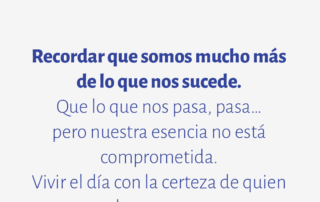 Recordar que somos mucho más de lo que nos sucede. Que lo que nos pasa, pasa… pero nuestra esencia no está comprometida. Vivir el día con la certeza de quien realmente somos.