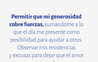 Permitir que mi generosidad cobre fuerzas, sumándome a lo que el día me presente como posibilidad para ayudar a otros. Observar mis resistencias y excusas para dejar que el amor me impulse.