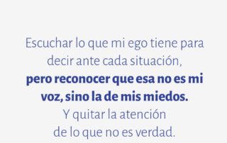 Escuchar lo que mi ego tiene para decir ante cada situación, pero reconocer que esa no es mi voz, sino la de mis miedos. Y quitar la atención de lo que no es verdad.