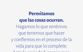 Permitamos que las cosas ocurran. Hagamos lo que sentimos que tenemos que hacer y confiemos en el proceso de la vida para que lo complete. Ante la ansiedad, respiremos.