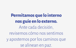 Permitamos que lo interno nos guíe en lo externo. Ante cada decisión, revisemos cómo nos sentimos y apostemos por los caminos que se alinean en paz.