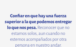 Confiar en que hay una fuerza superior a la que podemos entregar lo que nos pesa. Reconocer que no estamos solos, aun cuando no estemos acompañados por otra persona en nuestro andar.
