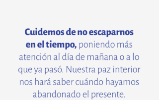 Cuidemos de no escaparnos en el tiempo, poniendo más atención al día de mañana o a lo que ya pasó. Nuestra paz interior nos hará saber cuándo hayamos abandonado el presente.