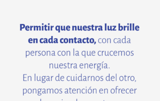 Permitir que nuestra luz brille en cada contacto, con cada persona con la que crucemos nuestra energía. En lugar de cuidarnos del otro, pongamos atención en ofrecer lo mejor de nosotros.
