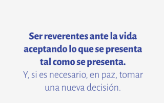 Ser reverentes ante la vida aceptando lo que se presenta tal como se presenta. Y, si es necesario, en paz, tomar una nueva decisión.