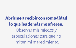 Abrirme a recibir con comodidad lo que los demás me ofrecen. Observar mis miedos y especulaciones para que no limiten mi merecimiento.