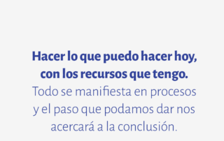 Hacer lo que puedo hacer hoy, con los recursos que tengo. Todo se manifiesta en procesos y el paso que podamos dar nos acercará a la conclusión.