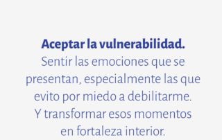 Aceptar la vulnerabilidad. Sentir las emociones que se presentan, especialmente las que evito por miedo a debilitarme. Y transformar esos momentos en fortaleza interior.