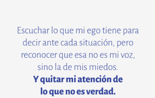 Escuchar lo que mi ego tiene para decir ante cada situación, pero reconocer que esa no es mi voz, sino la de mis miedos. Y quitar mi atención de lo que no es verdad.