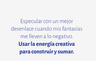 Especular con un mejor desenlace cuando mis fantasías me lleven a lo negativo. Usar la energía creativa para construir y sumar.