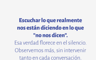 Escuchar lo que realmente nos están diciendo en lo que "no nos dicen". Esa verdad florece en el silencio. Observemos más, sin intervenir tanto en cada conversación.