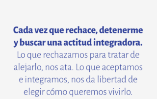 Cada vez que rechace, detenerme y buscar una actitud integradora. Lo que rechazamos para tratar de alejarlo, nos ata. Lo que aceptamos e integramos, nos da libertad de elegir cómo queremos vivirlo.