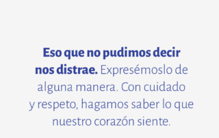 Eso que no pudimos decir nos distrae. Expresémoslo de alguna manera. Con cuidado y respeto, hagamos saber lo que nuestro corazón siente.