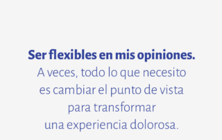 Ser flexibles en mis opiniones. A veces, todo lo que necesito es cambiar el punto de vista para transformar una experiencia dolorosa.