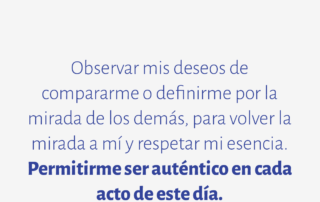 Observar mis deseos de compararme o definirme por la mirada de los demás, para volver la mirada a mí y respetar mi esencia. Permitirme ser auténtico en cada acto de este día.