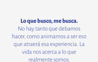 Lo que busco, me busca. No hay tanto que debamos hacer, como animarnos a ser eso que atraerá esa experiencia. La vida nos acerca a lo que realmente somos.