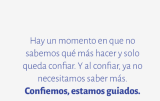 Hay un momento en que no sabemos qué más hacer y solo queda confiar. Y al confiar, ya no necesitamos saber más. Confiemos, estamos guiados.