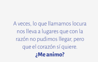 A veces, lo que llamamos locura nos lleva a lugares que con la razón no pudimos llegar, pero que el corazón sí quiere. ¿Me animo?