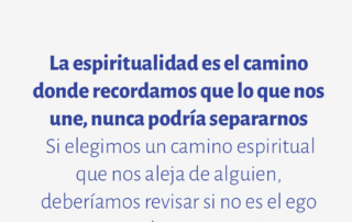 La espiritualidad es el camino donde recordamos que lo que nos une, nunca podría separarnos. Si elegimos un camino espiritual que nos aleja de alguien, deberíamos revisar si no es el ego a cargo de ese mensaje.