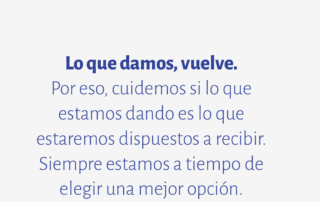 Lo que damos, vuelve. Por eso, cuidemos si lo que estamos dando es lo que estaremos dispuestos a recibir. Siempre estamos a tiempo de elegir una mejor opción.