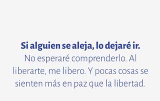 Si alguien se aleja, lo dejaré ir. No esperaré comprenderlo. Al liberarte, me libero. Y pocas cosas se sienten más en paz que la libertad.