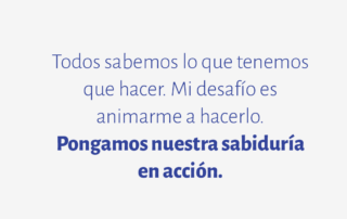 Todos sabemos lo que tenemos que hacer. Mi desafío es animarme a hacerlo. Pongamos nuestra sabiduría en acción.