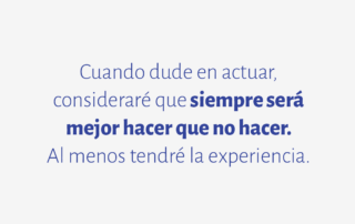 Cuando dude en actuar, consideraré que siempre será mejor hacer que no hacer. Al menos tendré la experiencia.