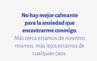 No hay mejor calmante para la ansiedad que encontrarme conmigo. Más cerca estamos de nosotros mismos, más lejos estamos de cualquier caos.