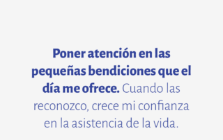 Poner atención en las pequeñas bendiciones que el día me ofrece. Cuando las reconozco, crece mi confianza en la asistencia de la vida.