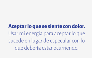 Aceptar lo que se siente con dolor. Usar mi energía para aceptar lo que sucede en lugar de especular con lo que debería estar ocurriendo.