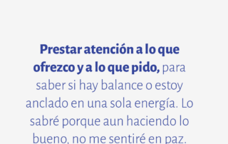 Prestar atención a lo que ofrezco y a lo que pido, para saber si hay balance o estoy anclado en una sola energía. Lo sabré porque aun haciendo lo bueno, no me sentiré en paz.