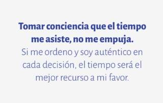 Tomar conciencia que el tiempo me asiste, no me empuja. Si me ordeno y soy auténtico en cada decisión, el tiempo será el mejor recurso a mi favor.