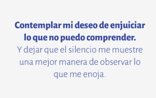 Contemplar mi deseo de enjuiciar lo que no puedo comprender. Y dejar que el silencio me muestre una mejor manera de observar lo que me enoja.