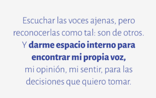 Escuchar las voces ajenas, pero reconocerlas como tal: son de otros. Y darme espacio interno para encontrar mi propia voz, mi opinión, mi sentir, para las decisiones que quiero tomar.