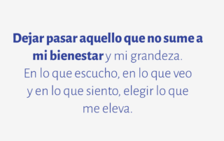 Dejar pasar aquello que no sume a mi bienestar y mi grandeza. En lo que escucho, en lo que veo y en lo que siento, elegir lo que me eleva.