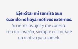 Ejercitar mi sonrisa aun cuando no haya motivos externos. Si cierro los ojos y me conecto con mi corazón, siempre encontraré un motivo para sonreír.