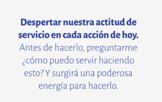Despertar nuestra actitud de servicio en cada acción de hoy. Antes de hacerlo, preguntarme ¿cómo puedo servir haciendo esto? Y surgirá una poderosa energía para hacerlo.
