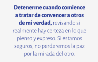 Detenerme cuando comience a tratar de convencer a otros de mi verdad, revisando si realmente hay certeza en lo que pienso y expreso. Si estamos seguros, no perderemos la paz por la mirada del otro.