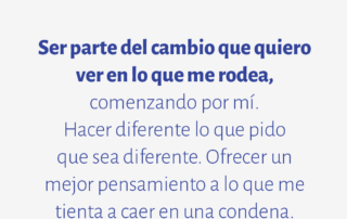 Ser parte del cambio que quiero ver en lo que me rodea, comenzando por mí. Hacer diferente lo que pido que sea diferente. Ofrecer un mejor pensamiento a lo que me tienta a caer en una condena.