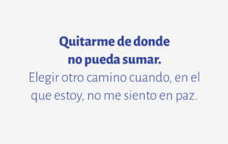 Quitarme de donde no pueda sumar. Elegir otro camino cuando, en el que estoy, no me siento en paz.